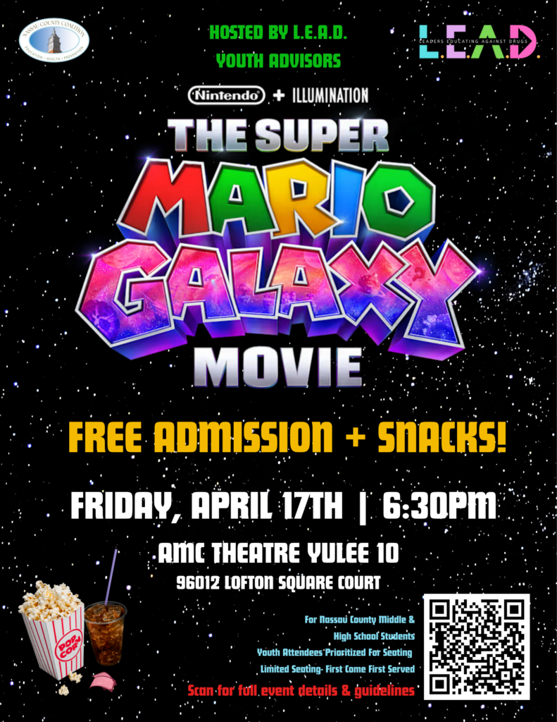 L.E.A.D. (Leaders Educating Against Drugs), the Youth Advisory Group for the Nassau County Coalition for Community Health, is excited to host this special movie night as part of the Better Without It campaign — creating a fun, positive, substance-free experience for local youth.